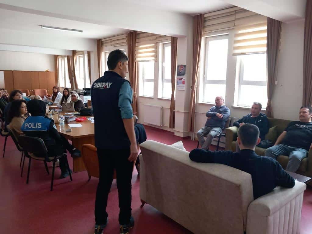 Amasya Emniyet Müdürlüğü'ne bağlı Siber Suçlarla Mücadele Şube Müdürlüğü ekibi, siber suçların gerçekleşmeden engellenmesi, maddi manevi zararların en aza indirgenmesi, siber suçlarla ilgili farkındalık ve bilinçlendirme faaliyetleri yapılması amacıyla oluşturulan '"SİBERAY" programı çerçevesinde çalışmalarını sürdürüyor. Bu çalışmalar çerçevesinde okulumuzda öğretmenlere yönelik Siber Zorbalık Güvenli ve Bilinçli İnternet Kullanımı ile Teknoloji Bağımlılığı konularında seminer- eğitim faaliyeti gerçekleştirmişlerdir. Kendilerine teşekkür ederiz.